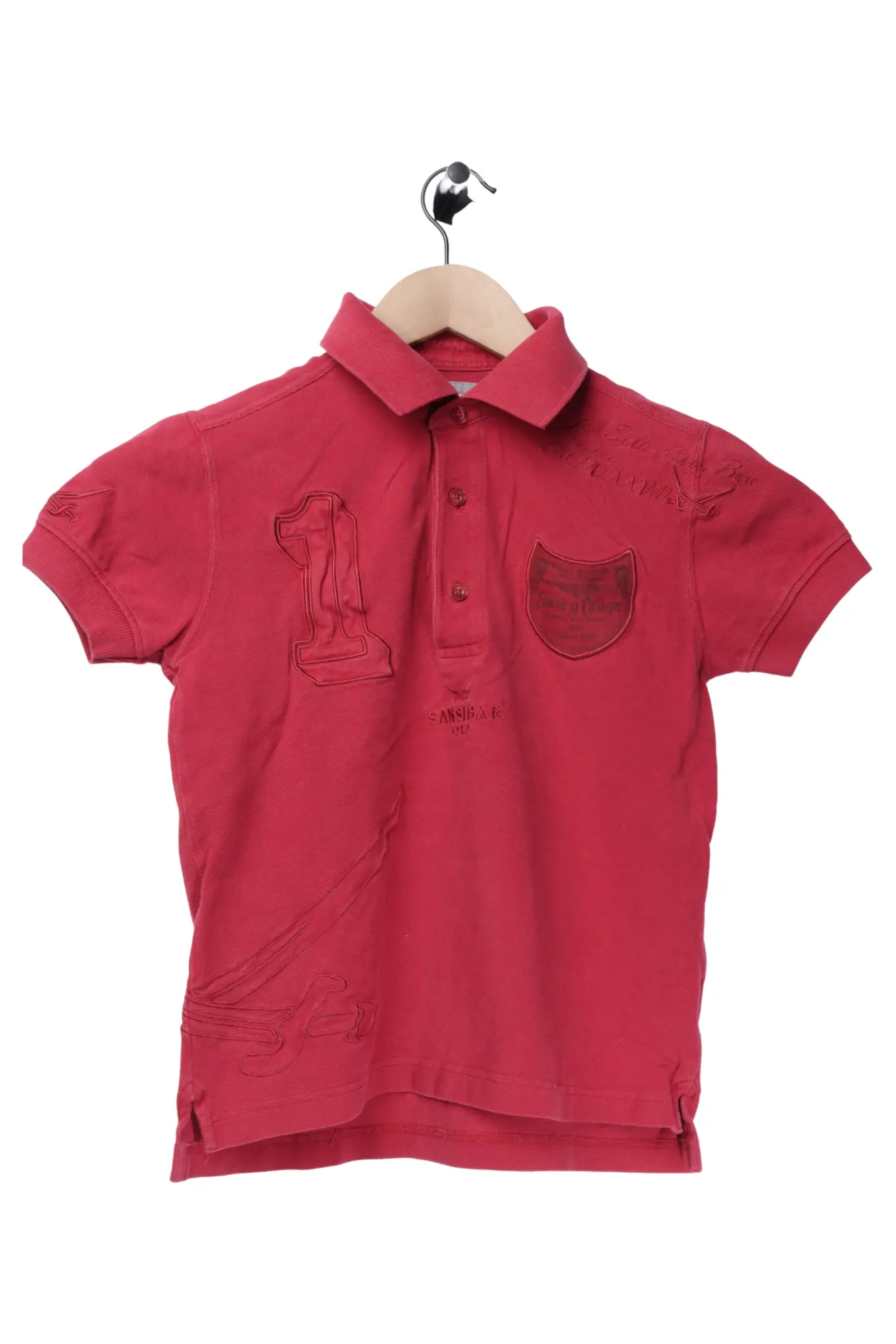 SANSIBAR Poloshirt Kinder XS Rot Baumwolle Kurzarm Top