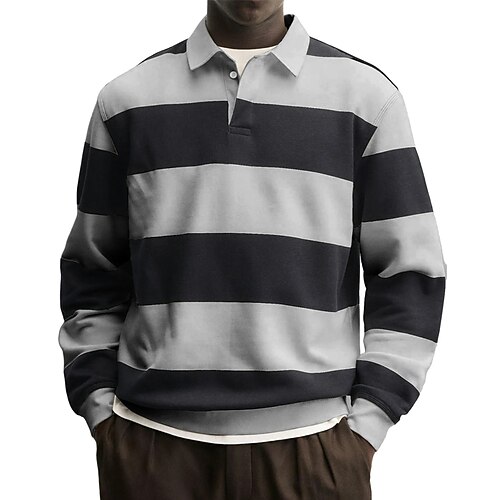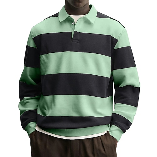 Per uomo Polo Maglia da golf Casuale Streetwear Bavero Manica Lunga Essenziale Moderno Strisce orizzontali Bottoni Primavera Autunno Vestibilità regolare Blu Grigio Bianco Rosso Blu marino Viola Polo