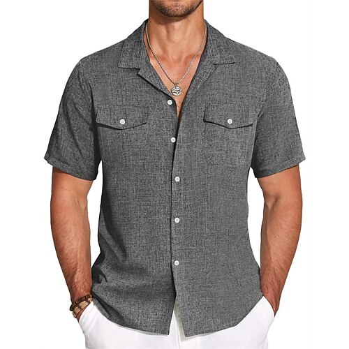 Per uomo Camicia Camicia Estiva Camicia da Spiaggia Camicia in cotone e lino Tinta unica Casuale All'aperto Nero Bianco Verde chiaro Blu marino Manica Corta Collo ripiegato Estate Abbigliamento Tasca