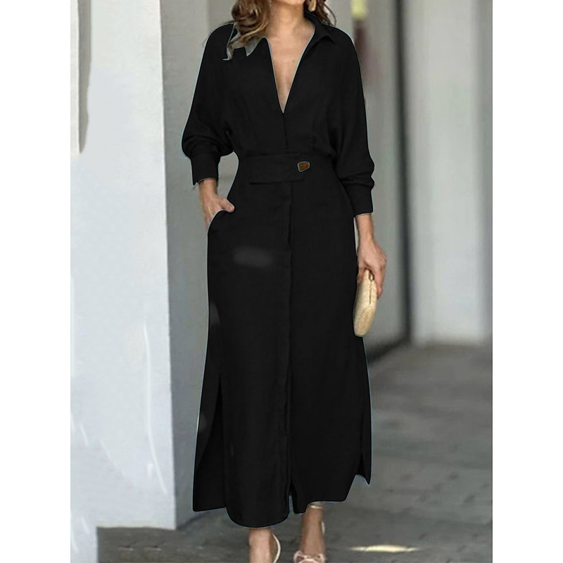 Women's Shirt Dress Long Dress Maxi Dress Pocket Split Daily Date Vacation Active Fashion Shirt Collar Long Sleeve Black White Pink Color