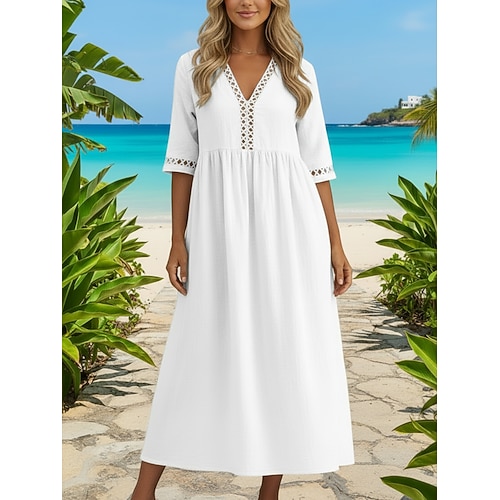 Per donna Abito Midi Abito in cotone e lino Moda Moderno All'aperto Vacanza Uscire Vestibilità comoda Semplice Mezza Manica Scollo a V Giallo neon Bianco Rosa Verde Estate Primavera