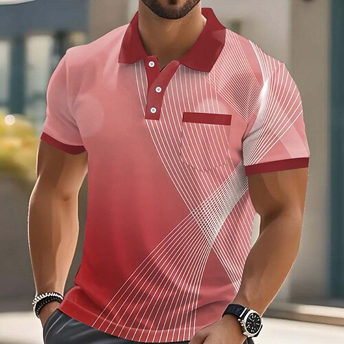 Herren Geometrisch Linie Poloshirts Kurzarm Polo-Shirts Hemden mit Kragen Lässig Outdoor Athleisure Alltagskleidung 3D-Druck Knöpfe Frühling Sommer Blau Rote Purpur