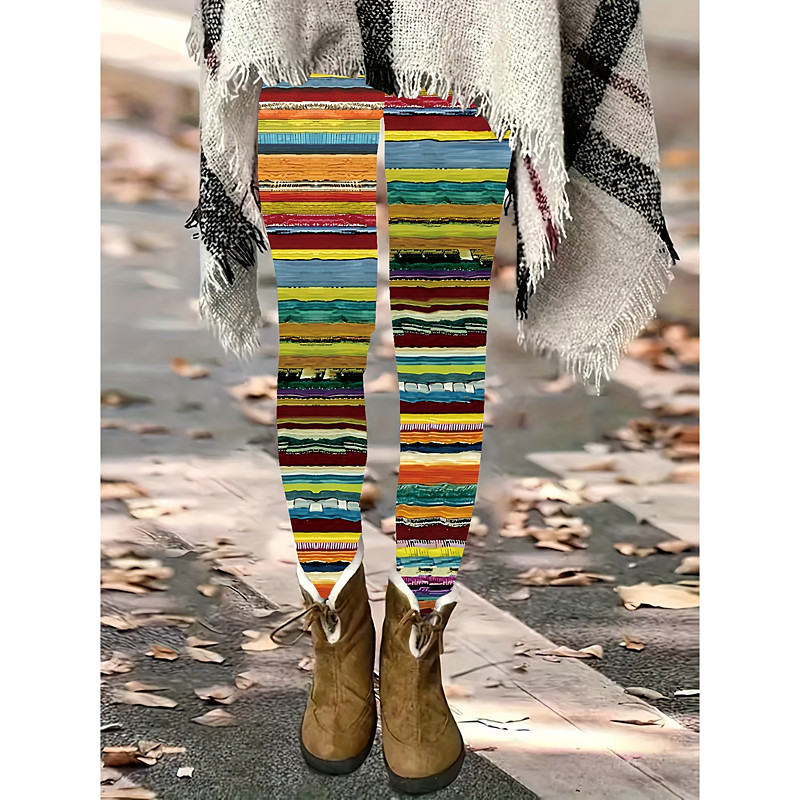 Women's Leggings Vacation Vintage Fashion Full Length High Waist Graphic Striped Printing Thermal Warm Soft Breathable High Elasticity Outdoor Vacation Street Pink Blue Orange Spring Fall Winter Slim
