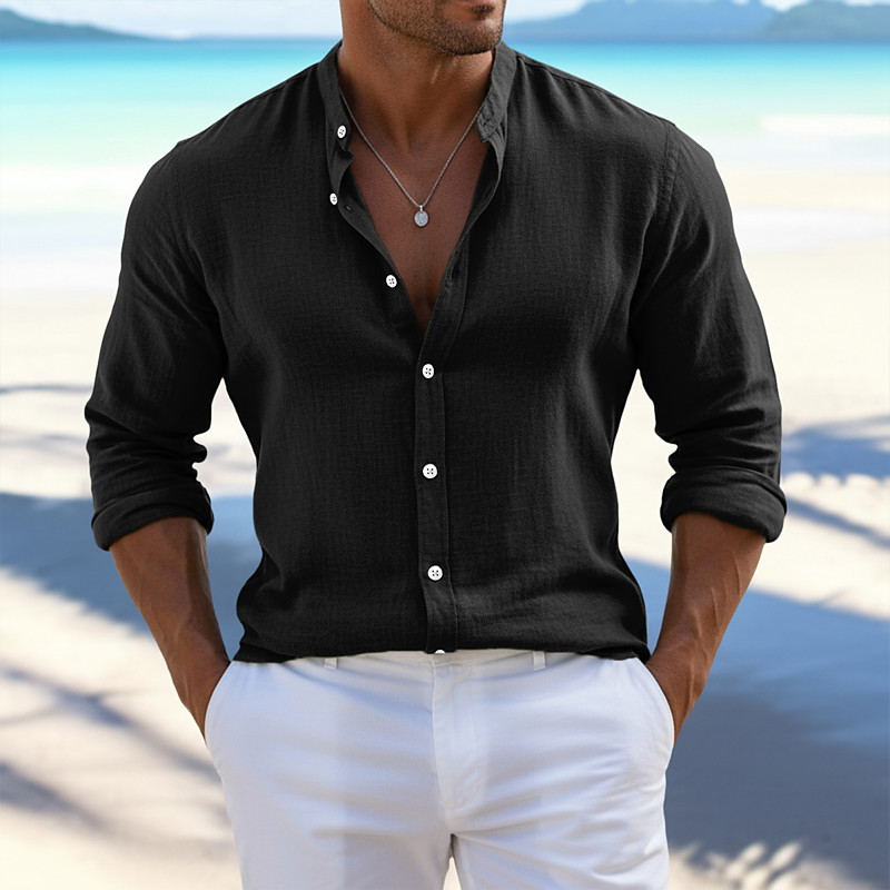 Men's Shirt Summer Shirt Beach Wear Button Up Shirt Plain Casual Daily Black White Pink Orange Long Sleeve Band Collar Summer Spring Summer Clothing Apparel Plain