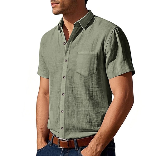 Per uomo Camicia Camicia di lino Camicia casual Camicia con Bottoni Camicia di cotone Semplice Vacanza Streetwear Nero Bianco Cachi Verde militare Manica Corta Collo ripiegato Estate Abbigliamento