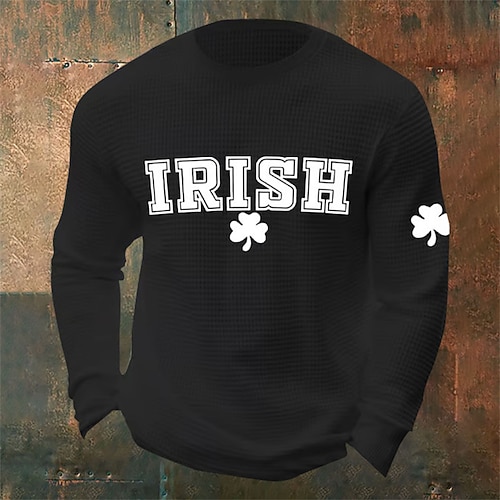 Giorno di San Patrizio San Patrizio Festa di San Patrizio Per uomo Trifoglio Camicia a nido d'ape Maglietta Manica Lunga maglietta Girocollo Camicia Sport Moda Classico Quotidiano Vacanza Feste Nero