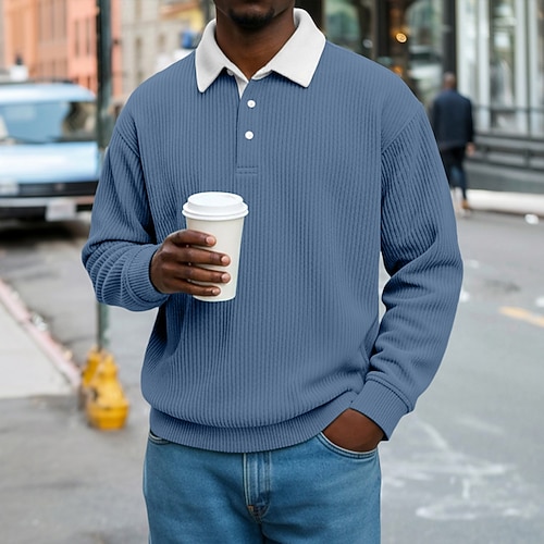 Per uomo Camicia di Velluto a Coste Polo Casuale Sportivo Bavero Manica Lunga Moda Essenziale Blocco di colori Bottoni Caldo Autunno Vestibilità regolare Nero Blu chiaro Rosso Verde Blu scuro Grigio