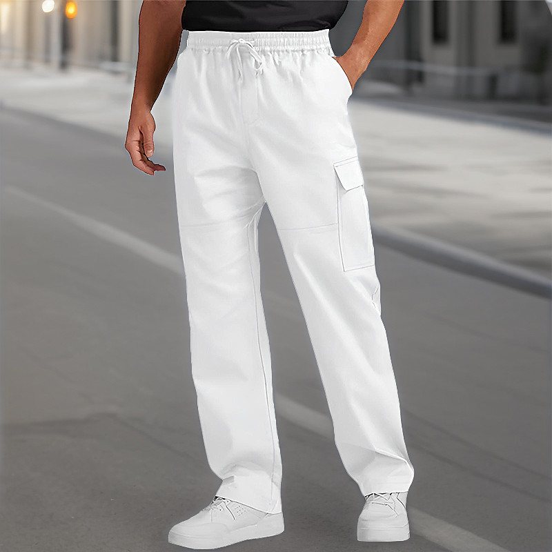 Men's Cargo Pants Trousers Drawstring Elastic Waist Multi Pocket Plain Wearable Outdoor Daily Camping Hiking Fashion Classic Black White