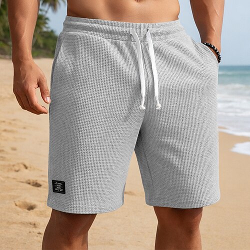 Per uomo Pantaloncini Waffle Shorts Pantaloncini casual Tasca Elastico in vita Testurizzato Semplice Comodità Traspirante Lunghezza al ginocchio Casuale All'aperto Spiaggia Vacanza Moda Nero Bianco
