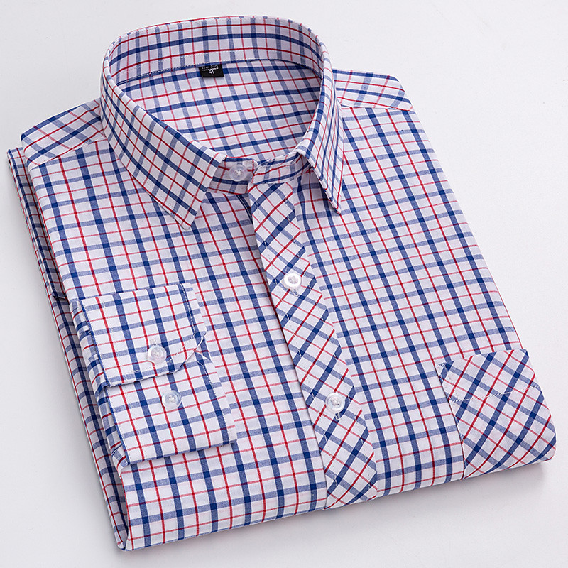 Herren Hemd Oberhemd Plaid Büro Karriere Hochzeitsfeier Schwarz Dunkelrot Rote Blau Langarm Kargen Frühling Herbst Bekleidung Vordertasche
