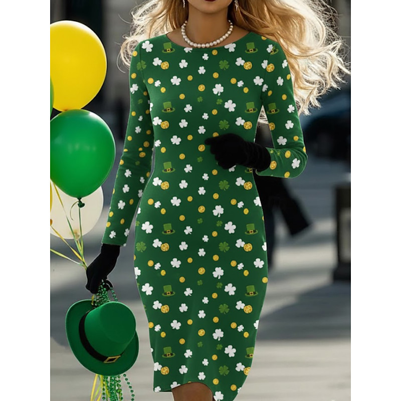 St Patrick's Day Lucky Women's Mini Dress Corset Dress Casual Daily Party Regular Fit Plaid Shamrock Abstract Long Sleeve Crew Neck Deep Green Green Summer Spring