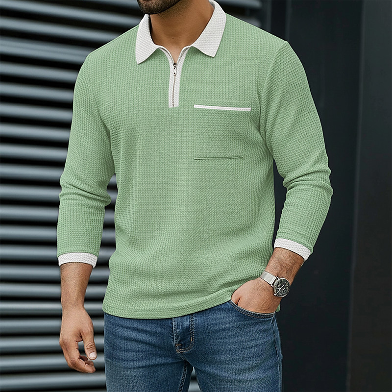 Men's Polo Shirt Quarter Zip Polo Work Casual Classic Collar Quarter Zip Long Sleeve Fashion Business Color Block Patchwork Zipper Winter Fall Winter Regular Fit Wine Black Navy Blue Green Light
