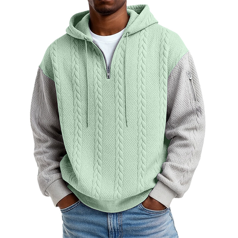 Men's Jacquard Hoodie Pullover Hoodie Sweatshirt Quarter Zip Hoodie Light Green Gray Hooded Plain Patchwork Color Block Textured Casual Daily Sports Outdoor Streetwear Cool Sportswear Spring Fall