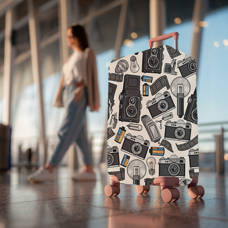 Vintage Style Printed Luggage Cover Stretch Suitcase Protector Elastic Travel Baggage Cover
