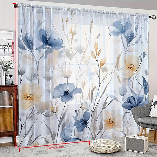 Tende minimaliste nordiche con fiori botanici, set da 2 pannelli, in poliestere con passante per asta, drappeggi floreali per camera da letto, soggiorno, decorazione per la casa, regalo per le vacanze