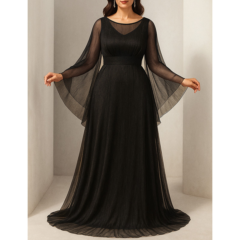 A-Line Floor Length Wedding Guest Dress Formal Dresses Evening Gown Mother of the Bride Dress Long Sleeve Crew Neck Elegant Vintage Party Spandex Chiffon with Lace