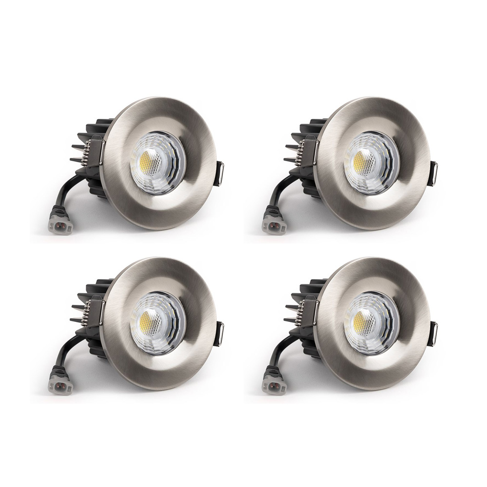 4 Pack - Soho Lighting Brushed Chrome LED Downlights - Fire Rated - Fixed - IP65 - CCT Switch - High CRI - Dimmable