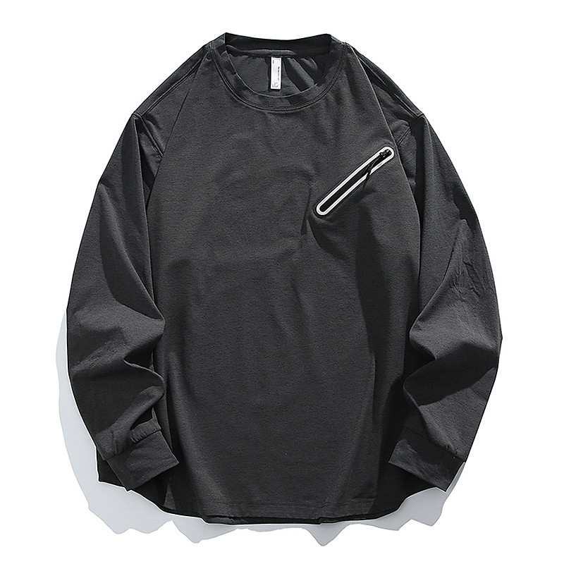 Men's Hiking Shirt Hiking top Long Sleeve Crew Neck Top Outdoor Quick Dry Sweat wicking Polyester Dark Grey Black Light Grey Tennis Golf Running