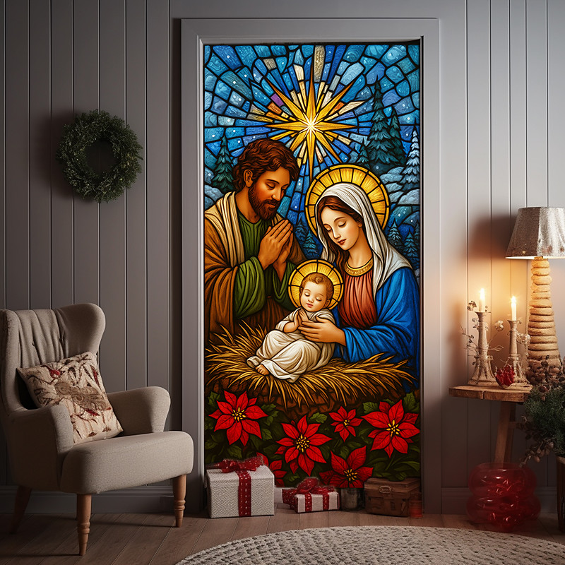 Christmas Door Cover Nativity Scene Design Holiday Curtain Hanging Backdrop for Home Entryway Decor Winter Theme Christmas Decoration for Festive Celebrations Xmas