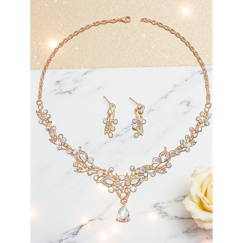 Women's Red Crystal Jewelry Set, Elegant Rhinestone Necklace and Earring Set with Gold Detailing, Perfect for Parties, Weddings Evening Events