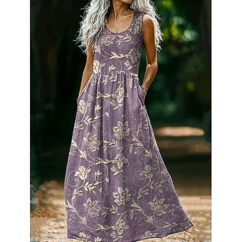 Per donna Abito maxi Abito Estivo Casual Boho Quotidiano Vestibilità regolare Grafico Senza Maniche Collo a V Bianco Giallo Vino Grigio Estate
