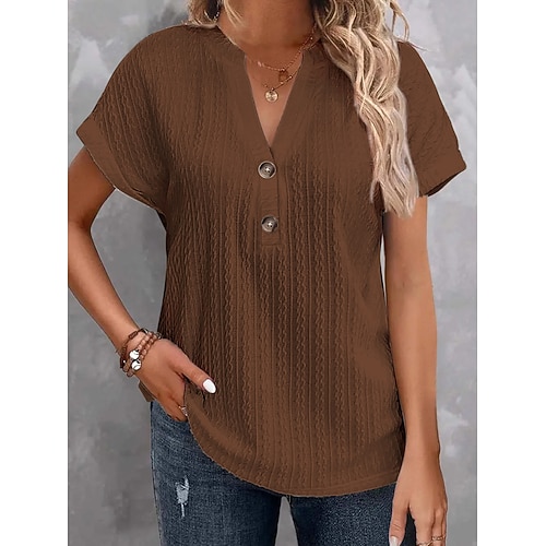 Per uomo Maglietta con bottoni Maglia Henley Maglietta Manica Corta Henley Estate Classico Colore Solido / Tinta Unita Moda Designer Fibbia Vacanza Streetwear Uscire Blu Vino Grigio scuro Maglietta