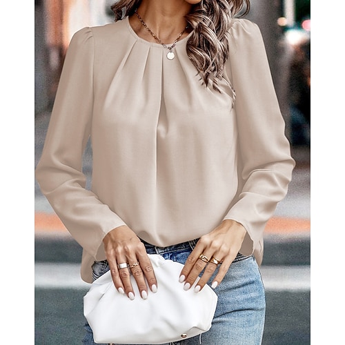 Per donna Camicia Blusa Semplice Attivo Casual Manica Lunga Girocollo Top Regolari Quotidiano Ferie Uscire Arricciato Nero Vino Verde militare Azzurro cielo Verde Estate Primavera
