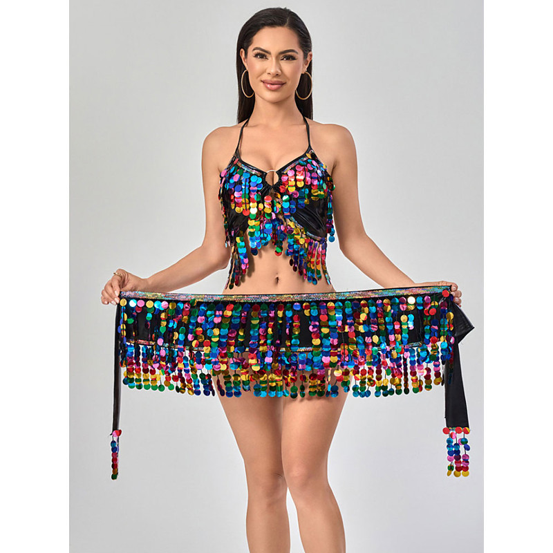 Carnival 2026Rio Carnival Samba Dancewear 2Pcs Women Belly Dance Dress Sequin Tassel Bra Top with Fringe Hip Scarf Set Carnival Clubwear Brazil Festival Performance Costume