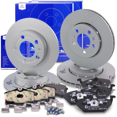 Ate Bremsscheiben + Bremsbeläge Vorne + Hinten [Hersteller-Nr. 10696804] für VW, Skoda, Seat, Audi