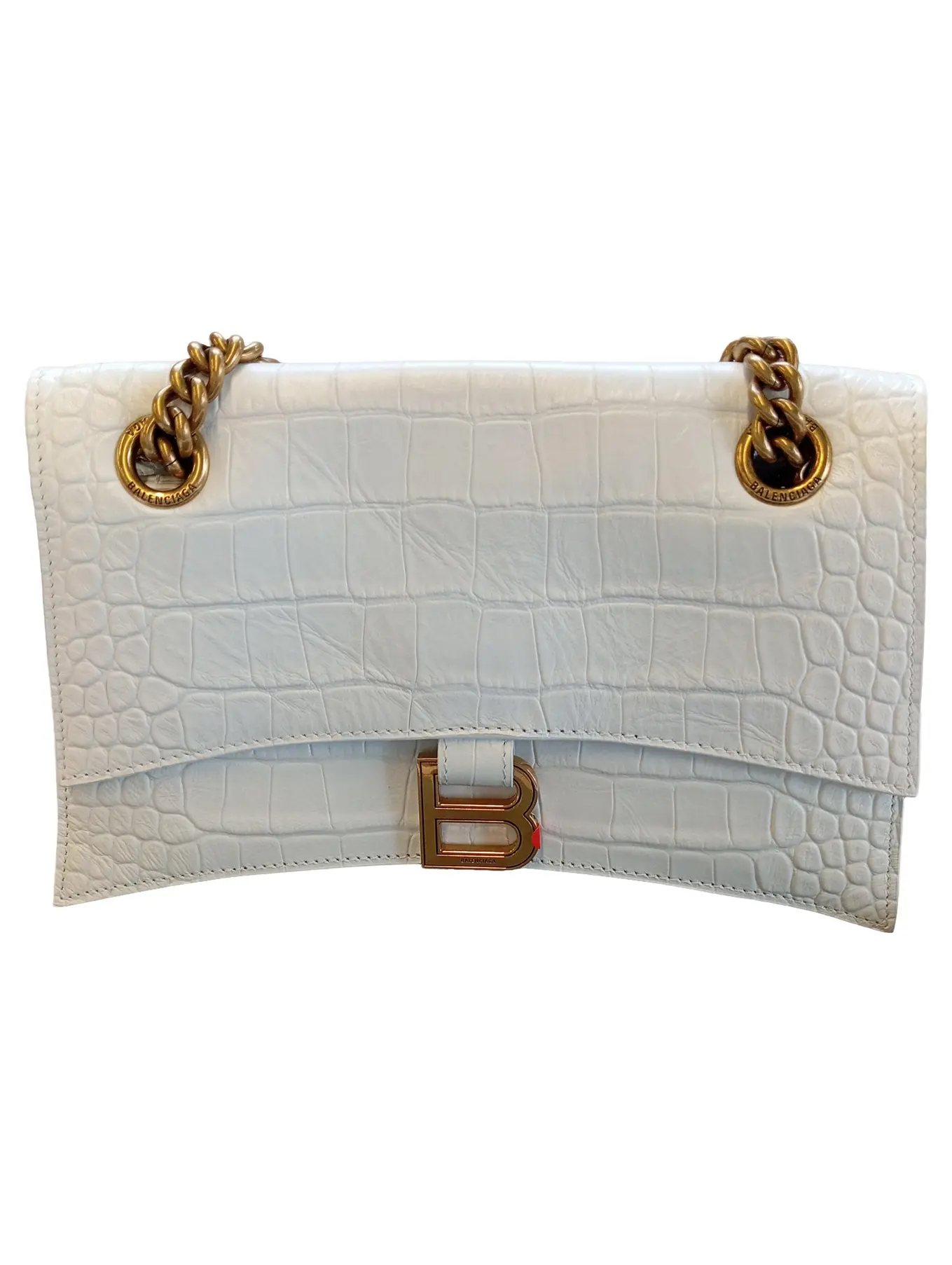 BALENCIAGA Crush Small Chain Bag - Weißes Leder, Krokodilprägung, 23x15 cm, Damen-Clutch mit Kettendetails
