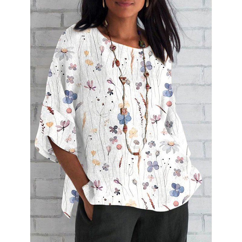 Women's Shirt Floral Daily Casual 3/4 Length Sleeve Crew Neck Regular Tops Daily Holiday Print White Yellow Red Blue Summer Spring Fall