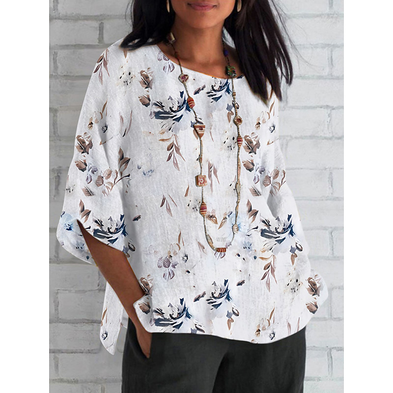 Women's Shirt Floral Daily Casual 3/4 Length Sleeve Crew Neck Regular Tops Daily Holiday Print White Blue Green Summer Spring Fall