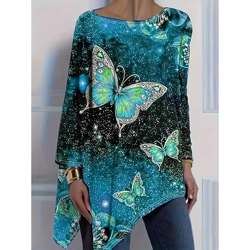 Women's T Shirt Graphic Geometric Butterfly Vintage Stylish Casual Long Sleeve Crew Neck Long Tops Daily Print Asymmetrical Yellow Purple Green Spring Fall