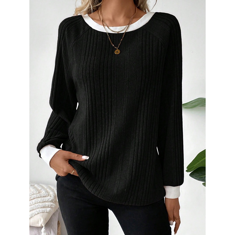 Women's Blouse Solid Color Stylish Casual Long Sleeve Crew Neck Regular Tops Daily Patchwork Black Pink Fuchsia Gray Spring Fall Winter