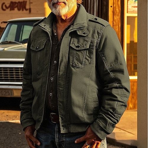 Per uomo Giacca camicia Giacca invernale Semplice Vacanza Abbigliamento quotidiano Nero Verde militare Manica Lunga Collo alla coreana Autunno Inverno Abbigliamento Con zip