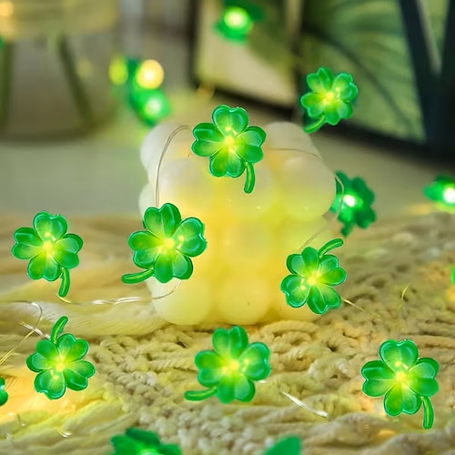 Luci a forma di quadrifoglio da 2 m e 20 LED, alimentate a batteria, luci di San Patrizio, trifoglio verde per feste, pareti della camera da letto, finestre, decorazioni pasquali di San Patrizio, luce calda
