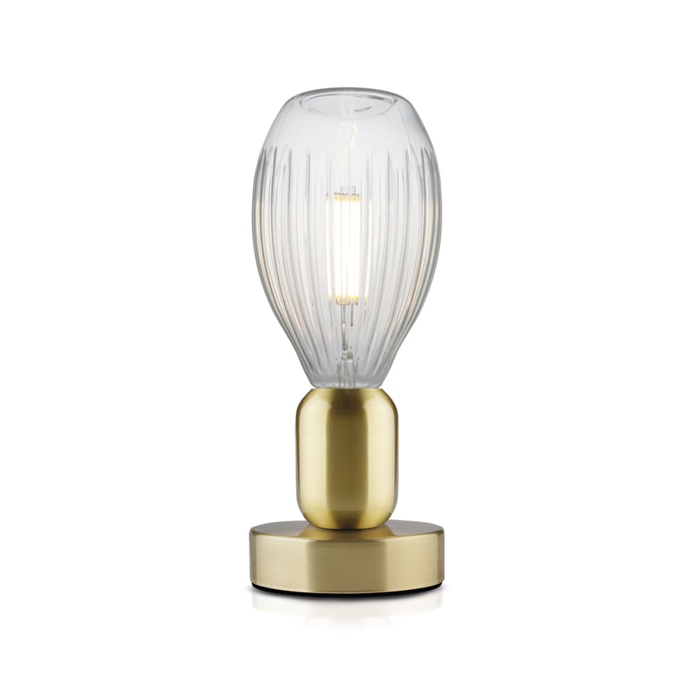 Lampada da tavolo a batteria color ottone con lampadina led cristalo