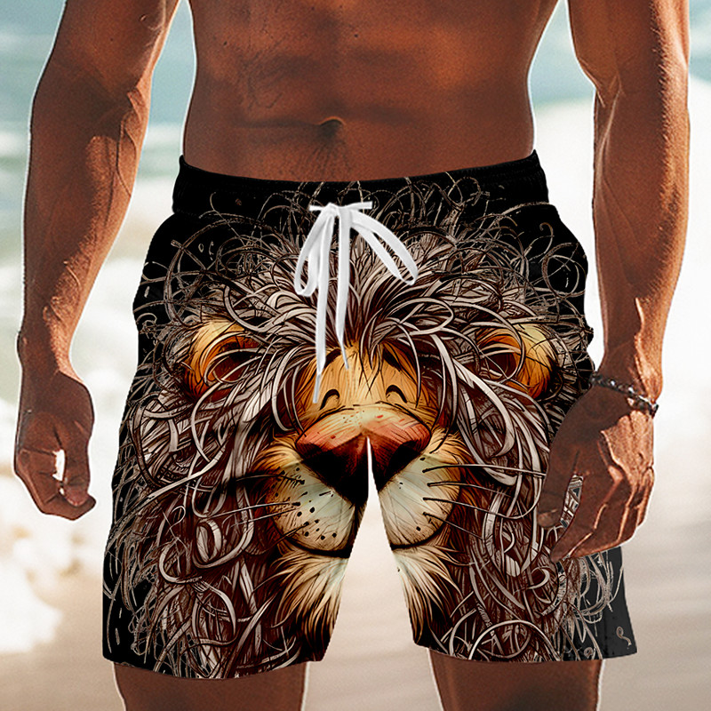 Men's Cartoon Lion Funny Swim Trunks Swim Shorts Board Shorts Mid Waist Hawaiian Beach Vacation Wear Side Pockets Mesh Lining Elastic Drawstring Waist Designer Clothing Apparel