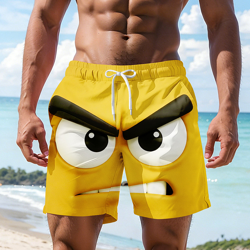 Men's Optical Illusion 3D Cartoon Angry Face Swim Trunks Swim Shorts Board Shorts Mid Waist Hawaiian Funny Beach Vacation Wear Side Pockets Mesh Lining Elastic Drawstring Waist Designer Clothing