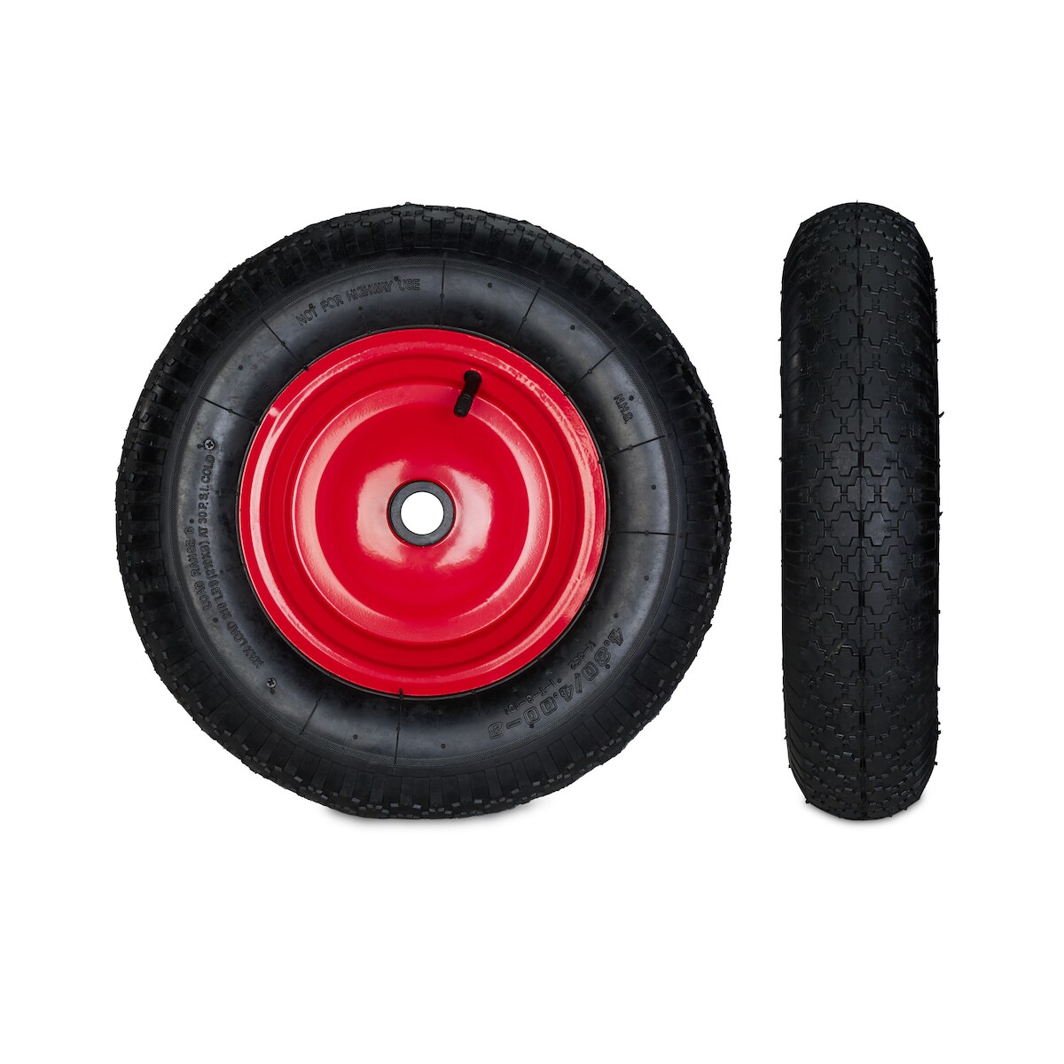 Relaxdays Schubkarrenrad 4.80 4.00-8, luftbereift, Stahlfelge, 3 Adapter, Ersatzrad Schubkarre, bis 120 kg, schwarz-rot