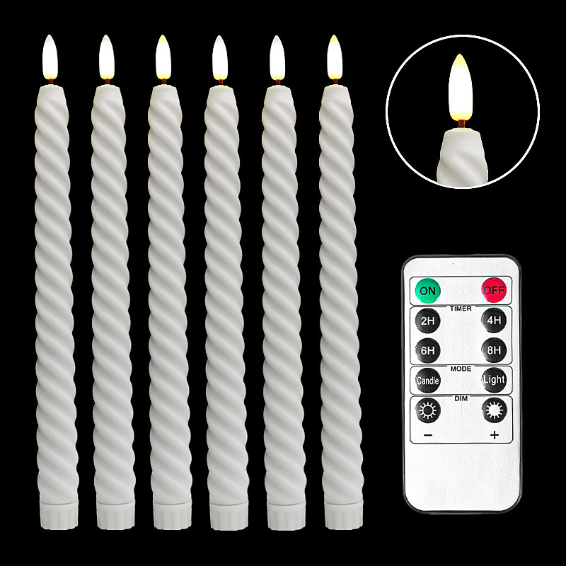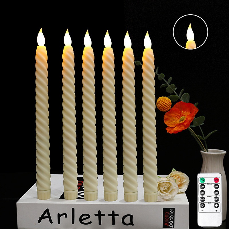 6 Pcs 25.5CM Halloween Christmas Rotating Thread LED Long Rod Simulation Electronic Candle Light Indoor and Outdoor Restaurant Party Wedding Atmosphere Decorative Light AAA Battery Remote Control
