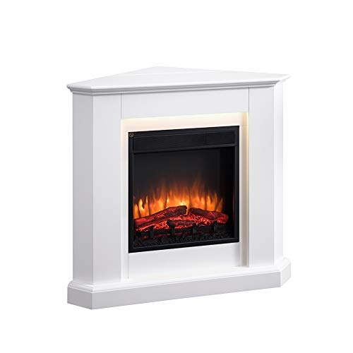 BALDERIA Elektrokamin Candela | Elektrischer Eckkamin mit Heizung, LED-Beleuchtung, 3D-Flammeneffekt & Fernbedienung - Weiß