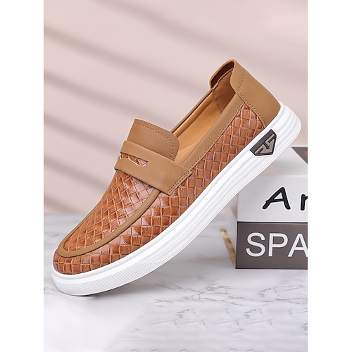 mocassini slip-on da uomo in similpelle color cuoio, alla moda e versatili, perfetti per le serate in resort e le serate rilassate