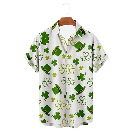 giorno di san patrizio quadrifoglio camicia casual da uomo abbigliamento quotidiano per uscire nel fine settimana autunno/autunno couverture maniche corte bianco, verde, arcobaleno s, m, l camicia in