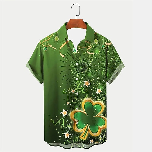 giorno di san patrizio quadrifoglio camicia casual da uomo abbigliamento quotidiano per uscire nel fine settimana autunno/autunno couverture maniche corte nero, verde s, m, l camicia in tessuto