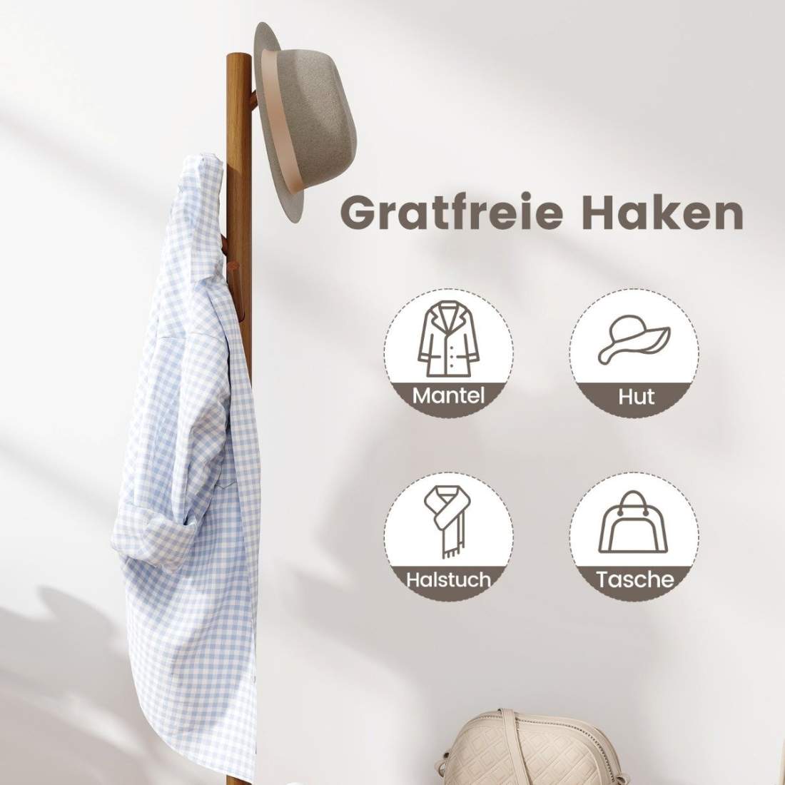 3 i 1 sidebord laget av klesstativ i massivt tre med skobenk 76 x 43 x 168 cm brun