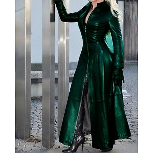 Per donna Giacca in Ecopelle Trench in pelle Caldo Confortevole Cerniera Moda Casual Semplice Vacanza Abbigliamento quotidiano Uscire Weekend Lungo Collo alla coreana Vestibilità regolare Manica Lunga