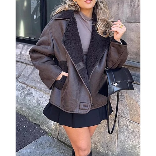 Per donna Giacca in Ecopelle Giacche di pelle di pelliccia Caldo Confortevole Tasca Bottoni Casual Blocco di colori Abbigliamento quotidiano Uscire Weekend Regolare Collo ripiegato Vestibilità comoda