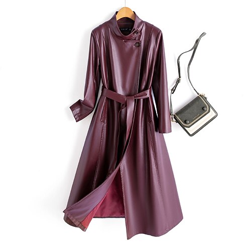 Per donna Giacca in Ecopelle Cappotto Trench Confortevole Tasca Bottoni Moda Semplice Vacanza Uscire Weekend Lungo Collo alla coreana Vestibilità regolare Manica Lunga Capispalla Nero Bianco Vino