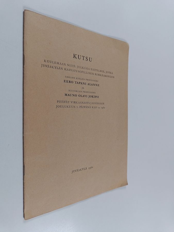Kutsu kuulemaan niitä julkisia esitelmiä, jotka Jyväskylän kasvatusopillisen korkeakoulun saksan kielen professori Eero Tapani Alanne ja historian ...
